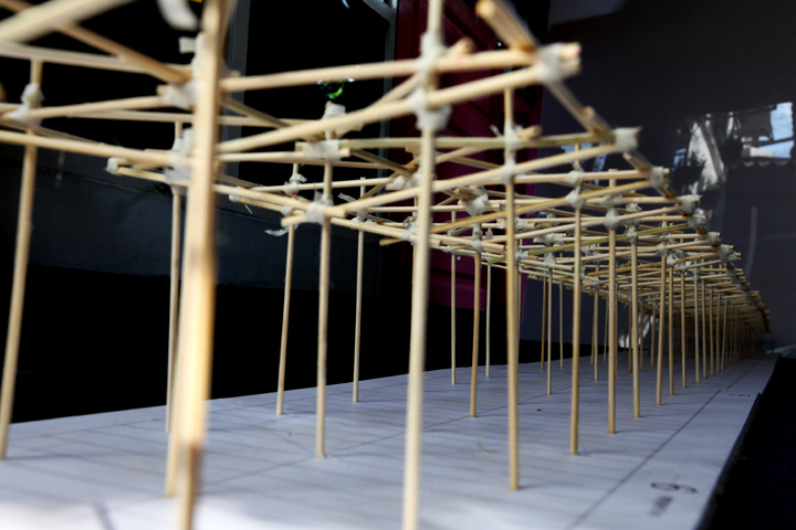 When we thought about outdoor festival in Thailand, we thought of shading. Although Big Mountain Music Festival is taking place in winter, but it is still very hot in daytime. Our idea is inspired by the biggest laundry field in the world in Mumbai (it’s called Dhobi Ghat.) We would make a super long cloth hanger to hold 2,000 pieces of Kamar bands (traditional Thai multi purpose cloth). People will be meeting, eating, chit-chatting underneath during daytime. At night it will be illuminated by NGAN-WAT (temple fair) style lamps on top of the structure.