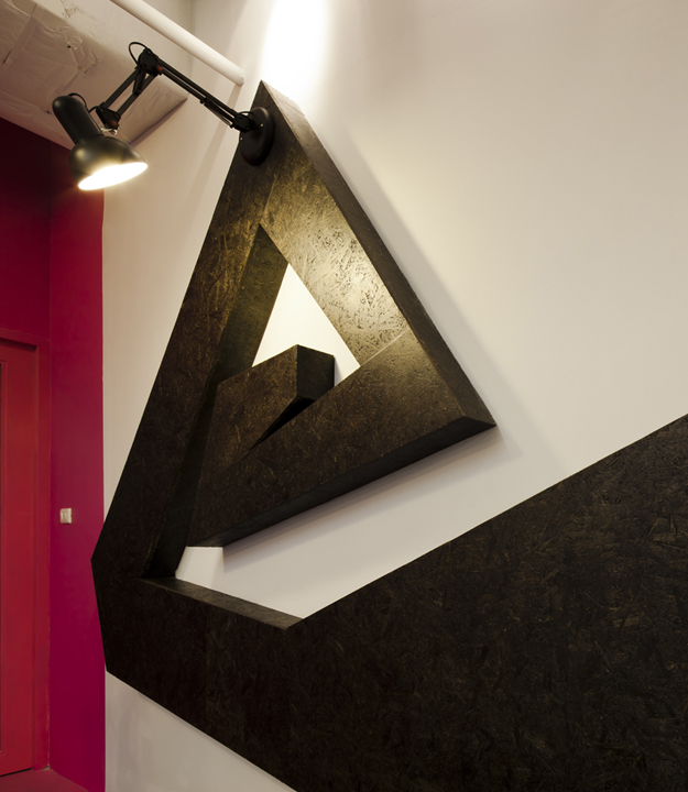 The office is divided into two main zones: the creative zone and the managing zone. The creative zone, bathed in light and open space, encourages broad communication, idea-sharing, and a sense of family among the staff. On the other side, the managing zone features a darker yet colorfully decorated atmosphere, emphasizing that excitement is essential even in management. Between these zones lies a playful trophy wall and a bicycle wall, creating a lively transition space with pink-colored walls that breathe life into routine tasks.